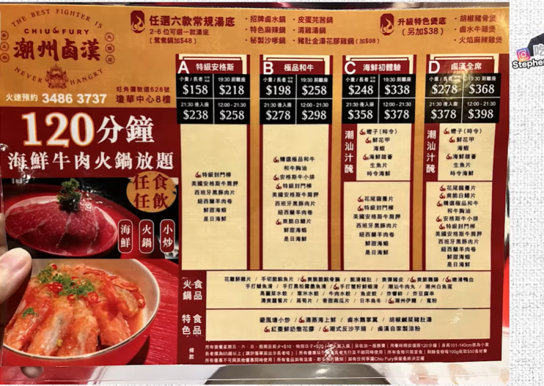 By KF Cheng on Sat, 2022-08-13 【放題速報】潮式放題 第二位半價! 潮州凍蟹 滷水鵝 潮州菜 潮汕汁醃蟶子 鮮花甲 海蝦 海鮮雜 全部任食 滷水火鍋湯底 旺角美食 潮州鹵漢大飯店 | 吃喝玩樂 Stephen Leung 2022-08-11 簡介 圖片 地圖 潮州鹵漢大飯店 地址 旺角彌敦道620-628號瓊華中心8樓 港鐵旺角站 E2 出口, 港鐵旺角東站 B 出口 電話 34863737 Openrice 開飯喇 潮州鹵漢大飯店 Chiu Fury Image Image Image Image Image Image Image Image Image Image Image Image Image Image Image Image Image Image Image Image Image Image Image Image Image Image 可試 店鋪格局 一般商場、地舖 菜式菜系 潮州菜 落餐方式 自助,任食,放題 客人烹煮 火鍋 旺角