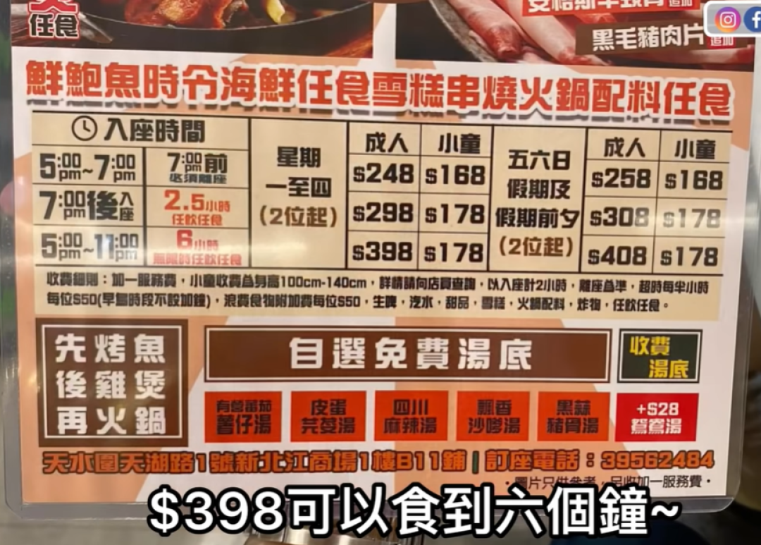 By KF Cheng on Sat, 2022-04-30 『海鮮鮑魚龍躉任食』最平$188丨最長6小時丨每日8至10款海鮮丨重慶烤魚丨麻辣雞煲任食丨Dreyers任食丨5款生啤任飲 @鋒哥廚房 (天水圍) 【毛爸食大個胃EP117】 Brendan 毛爸 2022-04-29 簡介 圖片 圖片 地圖 鋒哥廚房 天水圍 (已結業) 地址 天水圍天湖路1號嘉湖新北江商場1樓B11號舖 電話 39562484 鋒哥廚房 元朗 地址 元朗馬田路80號御庭居地下5號舖 電話 3705918 WhatsApp 3329803 Openrice 開飯喇 鋒哥廚房 (嘉湖新北江商場) Michael's Kitchen (Kingswood Richly Plaza) (已結業) 鋒哥廚房 元朗 Michael's Kitchen Image Image Image Image Image Image Image Image Image Image Image Image Image Image Image Image Image Image Image Image Image Image Image Image Image Image Image 鋒哥廚房 天水圍 鋒哥廚房 元朗 [HEA住去食] 鮑魚龍躉 海鮮雞煲放題 | 任食: 多款時令海鮮 安格斯牛頸脊 馬來沙嗲串燒 火鍋配料 雪糕甜品 | 10款名牌生啤任飲 包括Hoegaarden Yebisu惠比壽等 | 鋒哥廚房 HEA佬日記 2022-04-30 【HEA住去食】 任食羊腩煲環球海鮮麻辣雞煲 | 羊腩煲 麻辣雞煲 多款時令海鮮 安格斯牛頸脊 9款名牌生啤任飲 Movenpick Dreyer's 雪糕任食 | 鋒哥廚房 | Hotpot HEA佬日記 2022-11-28 【火鍋店反撲】任食魚蝦蟹|急推劈價無限時火鍋放題|全場生啤任飲|雞煲任食|麻辣烤魚|任飲任食|#馬加貓 |ft.鋒哥廚房 馬加貓 2024-03-27 可試 店鋪格局 一般商場、地舖 菜式菜系 港式、粵式、普通 落餐方式 自助,任食,放題 客人烹煮 火鍋 食物種類 海鮮 元朗