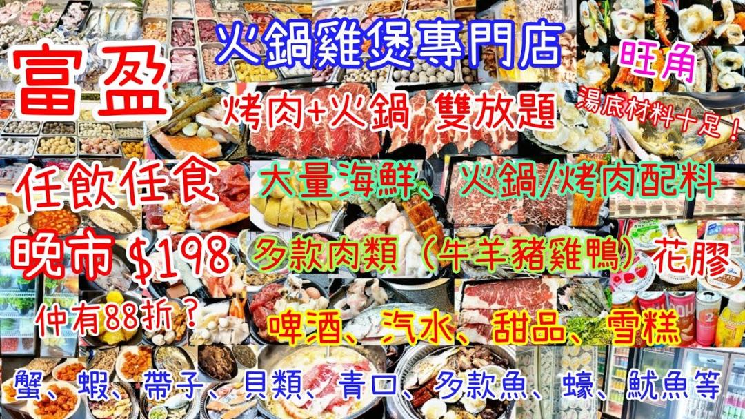 By KF Cheng on Sat, 2023-02-11 【HEA住去食】$178抵食雙料放題 | 花膠雞煲火鍋+韓燒放題+自助海鮮吧 | 原條燒鮮魚 喜力及多款啤酒任飲! 多款海鮮任食! 前菜小食任食! | 富盈火鍋雞煲專門店 | Hotpot BBQ HEA佬日記 2023-02-06 簡介 圖片 圖片 地圖 富盈火鍋雞煲專門店 地址 旺角通菜街1M-1T號華發大廈1樓 港鐵油麻地站 A2 出口, 步行約4分鐘 電話 23285168 營業時間 17:00 - 00:00 Openrice 開飯喇 富盈火鍋雞煲專門店 Image Image Image Image Image Image Image Image Image Image Image Image Image Image Image Image Image Image Image Image Image 【港飲港食】抵食火鍋+烤肉雙放題 ‖ 任飲任食多款海鮮(蟹、蝦、帶子、貝類、青口、魚、蠔、魷魚等) + 數十款烤肉、火鍋配料+前菜小食炸物+飲品+啤酒+甜品雪糕 ‖ 晚市$198- ‖ 旺角 富盈火鍋 慳玩。狂遊*狂食 2023-01-20 【放題速報】自助海鮮吧 多款魚類 | 火鍋放題 + 韓式燒烤 雙煲齊發 食足3小時 | 龍躉片 生蠔 鯇魚 黃花魚 三文魚 旺角放題 富盈火鍋雞煲專門店 | 吃喝玩樂 Stephen Leung 2022-12-04 旺角$198 任食海鮮+雞煲+韓燒 無限追加花膠雞!!! ▲雅軒試食報告 [[中字]] 雅軒Kinki KB Lam 2022-08-04 【全部任叫】$258晚市雞煲+韓燒:無限花膠❗️鮑魚 ❗️ 海鮮❗️美國安格斯牛❗️食到回本有賺🤭富盈火鍋雞煲專門店|雙放題|香港美食|旺角美食|Buffet|Hong Kong Food 草根貓 Grassroots Cat 2022-06-03 【HEA住去食】142元起抵食三料放題🔥 | 最長三小時任食花膠雞煲🐔+牛肉海鮮火鍋🐟+韓燒🔥 | 自助海鮮吧 多款海鮮任食! 喜力及多款啤酒任飲🍺 | 富盈火鍋雞煲專門店 | Hotpot BBQ HEA佬日記 2023-06-08 旺角$142元起花膠雞煲 海鮮火鍋韓燒放題 象拔蚌韓國生蠔多款靚牛肉任食 醇滑嘉士伯喜力多款飲品任飲 皓男 Hong Kong Walker 2023-07-14 【火鍋放題】花膠雞煲|海鮮牛肉火鍋|韓燒|最長食足4小時| 多款美食|啤酒汽水任飲 夢姐 2023-08-06 【食玩地圖】 $142 起 花膠 海鮮 鮑魚雞煲 牛小排 火鍋 燒烤 放題 啤酒 任飲任食 火鍋放題 3料放題 韓國生蠔 鮑魚 海蝦 BB聖子 白蜆 |富盈火鍋雞煲專門店 | 食玩地圖 食玩地圖 2023-09-02 值得 店鋪格局 一般商場、地舖 菜式菜系 港式、粵式、普通 落餐方式 自助,任食,放題 客人烹煮 火鍋 韓燒 食物種類 雞煲 海鮮 旺角