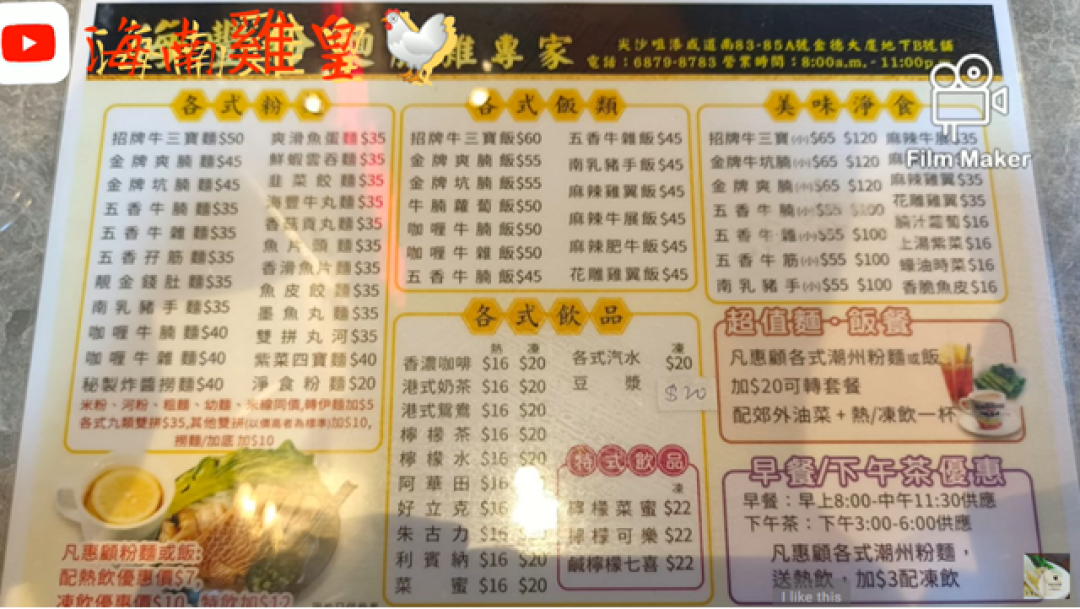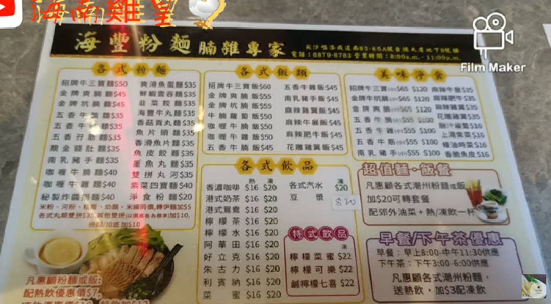 By KF Cheng on Thu, 2023-04-13 [海南雞皇🐓] 超抵食推介!$35牛雜粉麵連熱飲質素好 多謝帆哥分享|海豐粉麵|尖沙咀|下午茶|牛什麵|竹腸|草肚|抵食|20230209 海南雞皇🐔 2023-02-09 簡介 圖片 地圖 海豐粉麵 地址 尖沙咀漆咸道南83-85A號金德大廈地下B號舖 港鐵尖沙咀/尖東站 P3 出口, 步行約7分鐘 電話 68798783 Openrice 開飯喇 海豐粉麵 Image Image Image Image Image Image Image 可試 店鋪格局 一般商場、地舖 菜式菜系 港式、粵式、普通 落餐方式 單點、點餐 客人烹煮 廚房廚師製作 食物種類 粥、粉、麵類 尖沙嘴