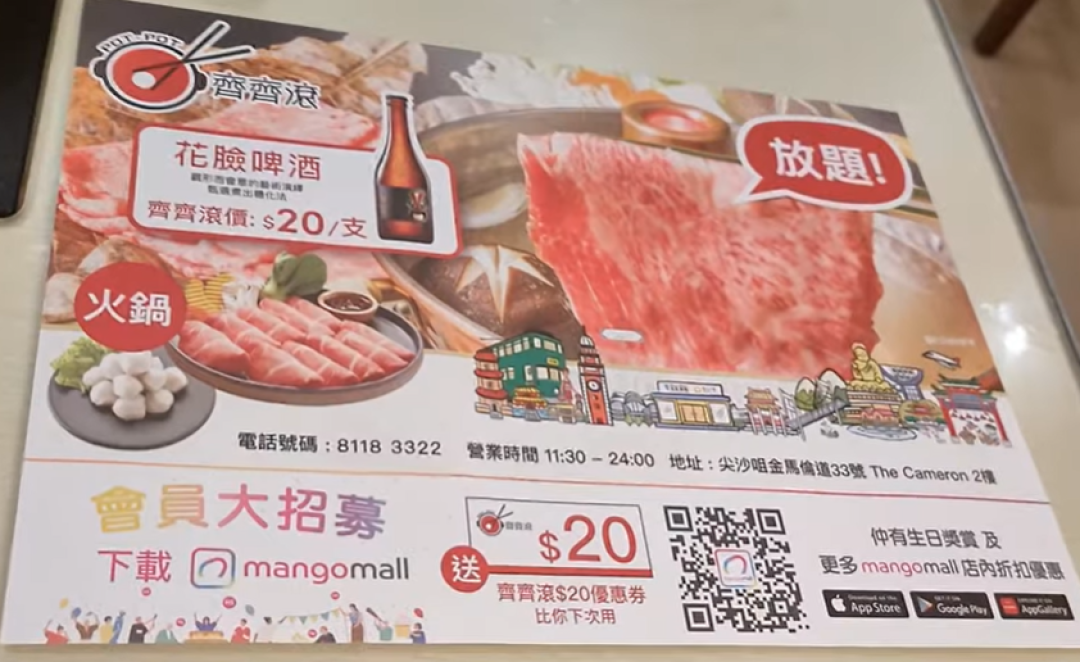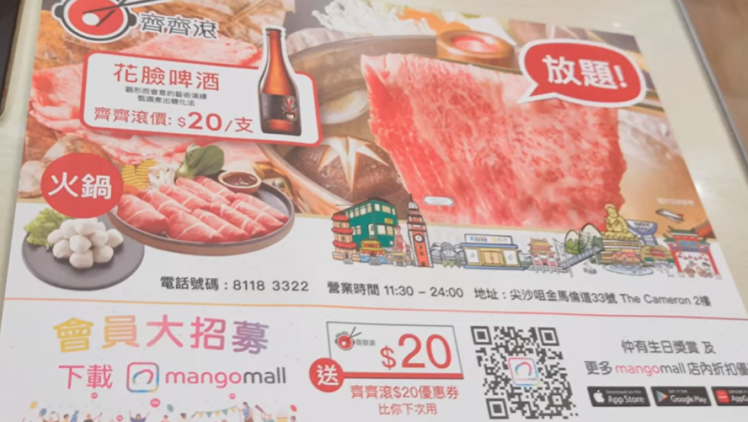 By KF Cheng on Sat, 2021-08-07 【港飲港食】齊齊滾 新派火鍋放題 ‖ 牛、豬、雞、脆鯇+多款火鍋配料、飲品甜品雪糕雪條等全部任食 ‖ $138-起 ‖ 任飲任食 90分鐘 ‖ 尖沙咀 ‖ 火鍋配料選擇豐富 餐廳環境不 慳玩。狂遊*狂食 2021-08-05 簡介 圖片 地圖 齊齊滾 地址 尖沙咀金馬倫道33號The Cameron2樓 港鐵尖沙咀/尖東站 B2 出口, 步行約4分鐘 電話 81183322 Openrice 開飯喇 齊齊滾 Pot Pot Image Image Image Image Image Image Image Image Image Image Image Image Image Image Image Image Image Image Image Image Image Image Image Image Image Image Image Image Image Image Image Image Image Image Image Image Image Image 參考 店鋪格局 一般商場、地舖 菜式菜系 港式、粵式、普通 落餐方式 單點、點餐 客人烹煮 廚房廚師製作 尖沙嘴